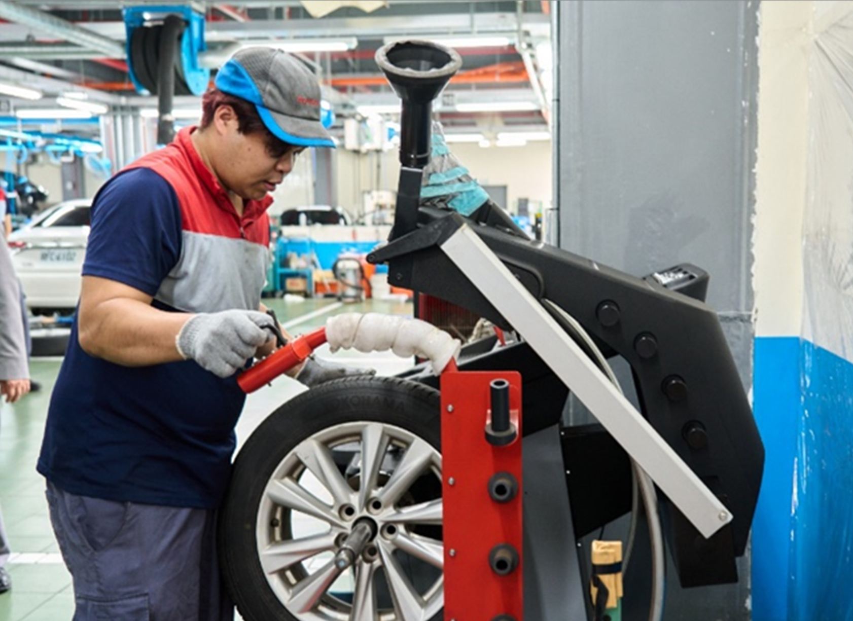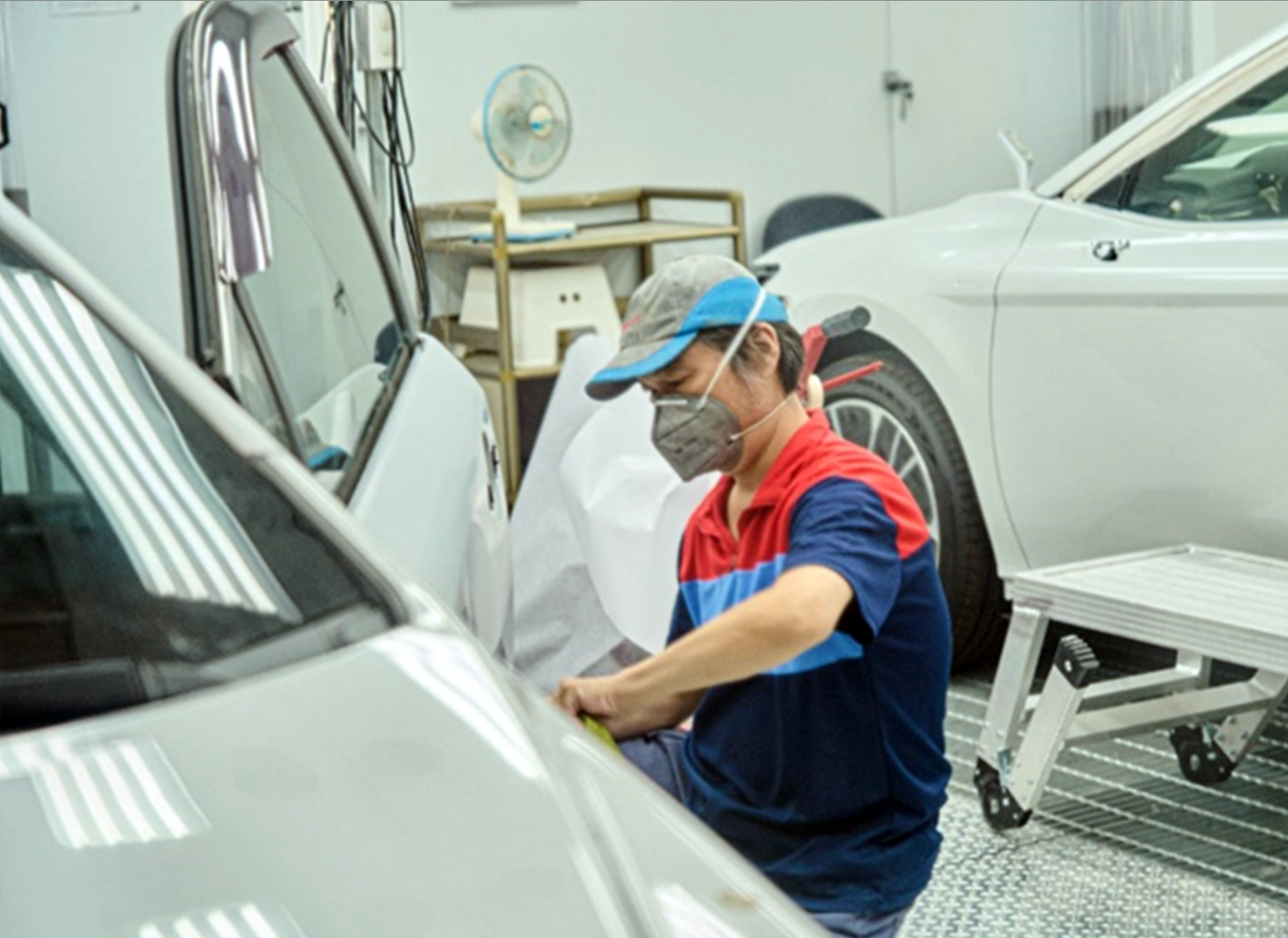 In advancing smart services, Ho Tai Motor established a Process Improvement Office to drive the Smart Workshop initiative. By replacing paper-based workflows with tablets, average routine maintenance time was reduced from 117 minutes to 89 minutes, significantly improving operational efficiency and customer experience. At the same time, dealerships actively introduced AI spray robots, electric assist tools, and cooling equipment to reduce physical strain on technicians, and became early adopters of water-based clear coats to lower exposure to volatile solvents—demonstrating a long-term commitment to employee health and workplace safety in line with TOYOTA’s human-centered philosophy.