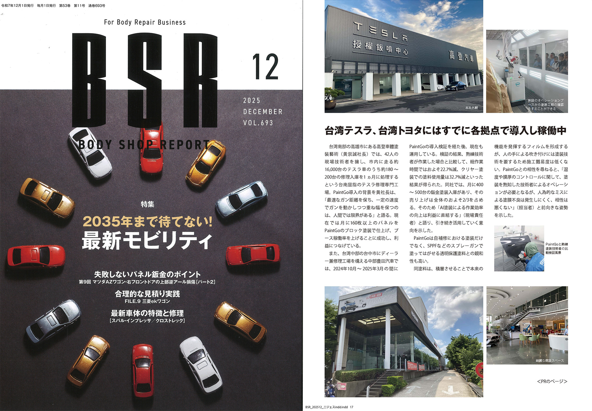 GratitudeWe sincerely thank Japan’s BSR BODY SHOP REPORT, a professional automotive repair magazine, for its in-depth interview and feature on XTRITON’s Smart Bionic Painting Robot. This coverage allows more international readers to see Taiwan’s breakthroughs in automotive paint automation. The BSR feature particularly focused on real-world deployments of the Smart Bionic Painting Robot within Taiwan’s Tesla and Toyota service networks, presenting data that highlights its impact on on-site efficiency and quality.